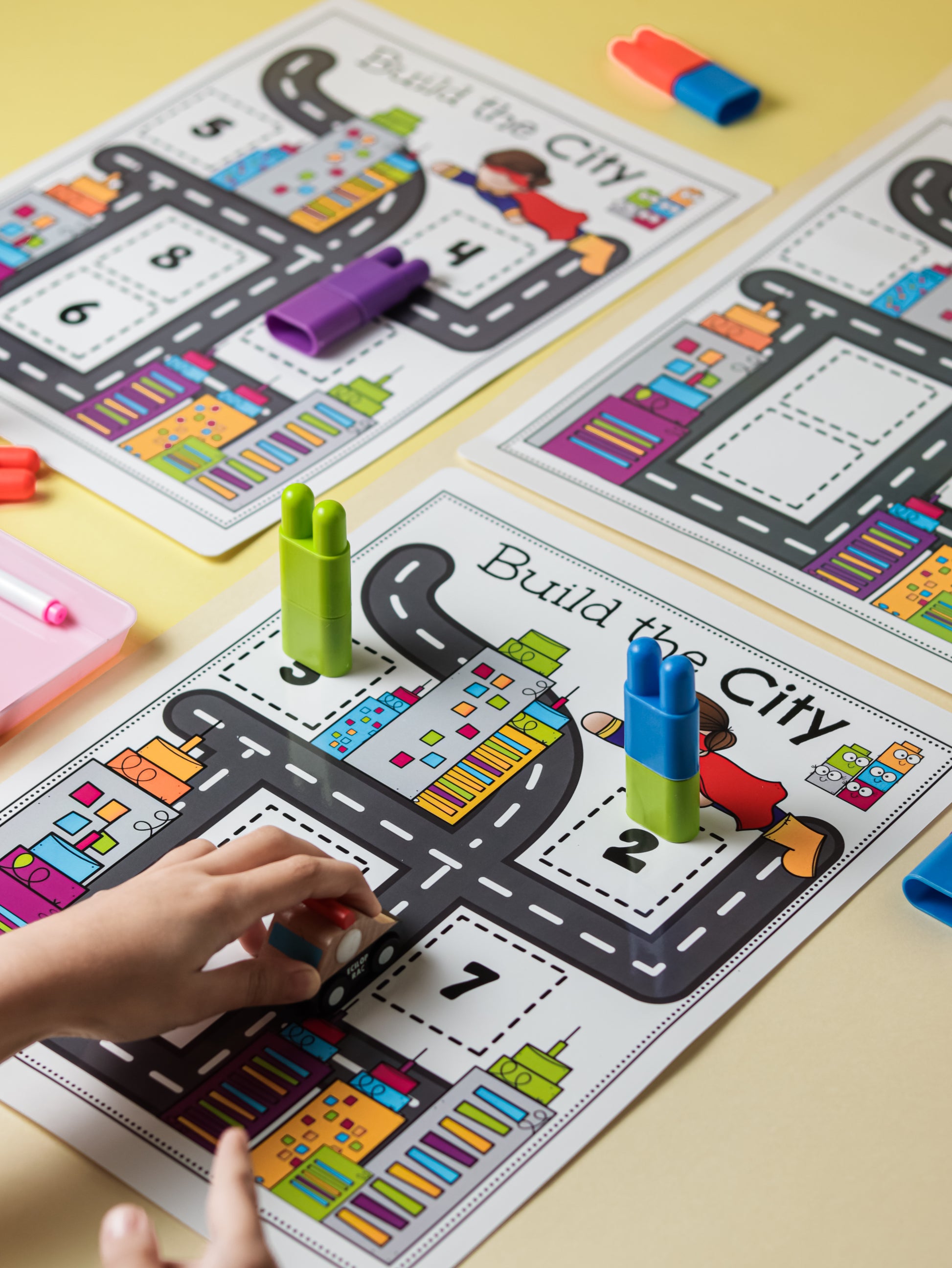 سيحب أطفالك إنشاء هذه المدن بمكعباتها الملونة ثلاثية الأبعاد 😉. يمكنهم أيضًا تحريك السيارة المضمنة حول الطرق، محاولين عدم إسقاط المباني التي قاموا ببنائها كتحدي إضافي وأكثر متعة!