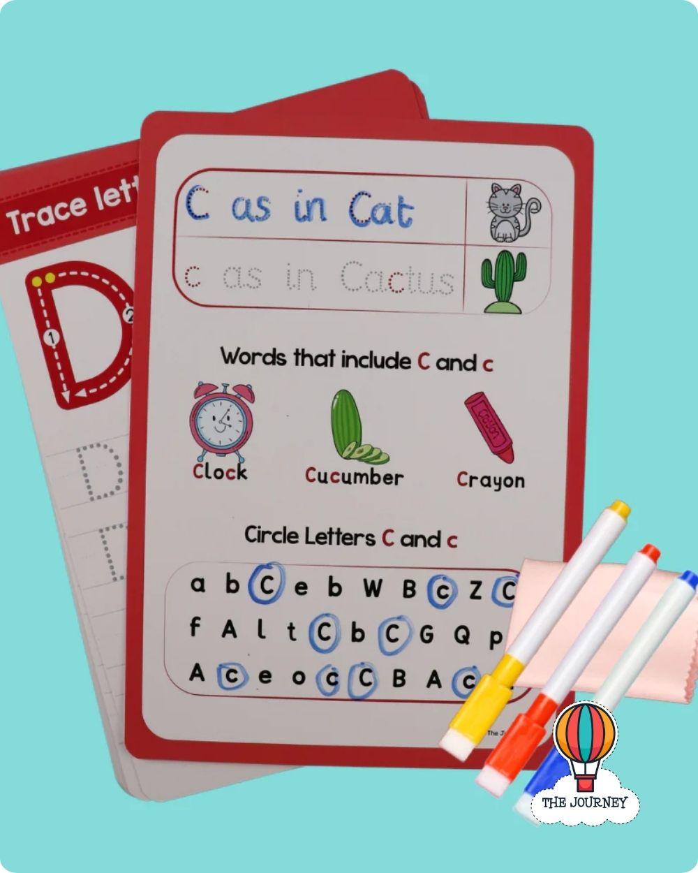 اسمح لأطفالك بتطوير وممارسة مهارات الكتابة اليدوية الأولى باستخدام بطاقات تتبع الحروف النظيفة.