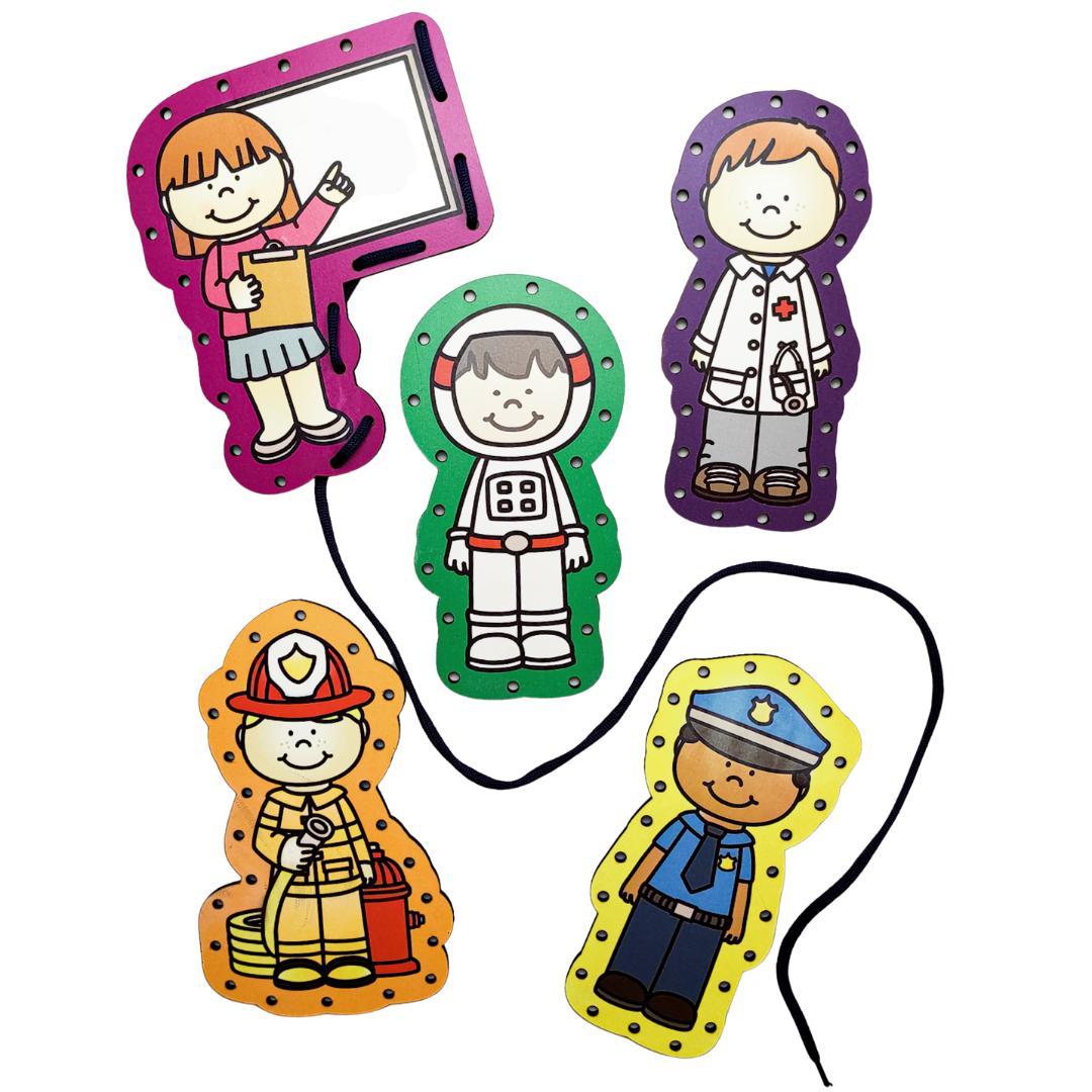 - 5 ألواح ربط مصنوعة من الخشب عالي الجودة ( مدرس، رجل إطفاء، شرطي، طبيب، رائد فضاء ).